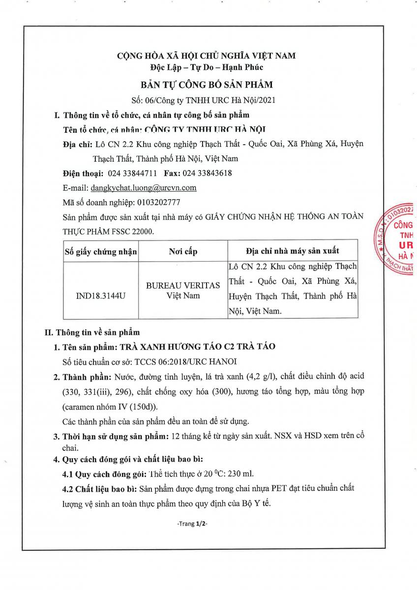 C2 GREEN TEA APPLE FLAVOR - HA NOI