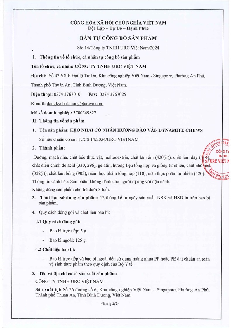 DYNAMITE CHEWS CHEWY CANDY PEACH - LYCHEE FLAVORED