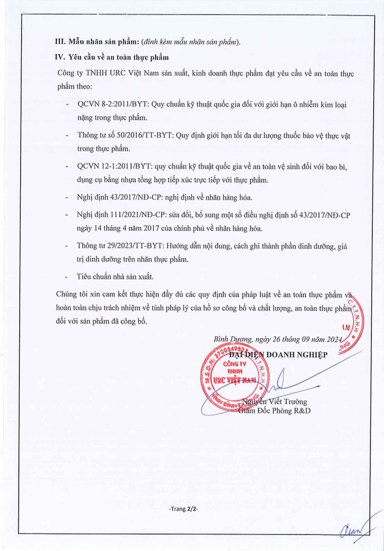 BẢNG KẾT QUẢ THỬ NGHIỆM HÀ NỘI PLANT