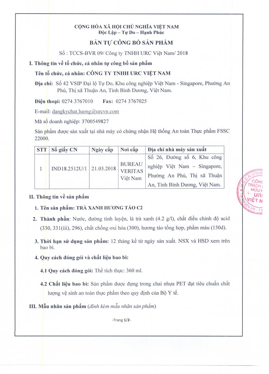 C2 GREEN TEA APPLE FLAVOR - Binh Duong Factory