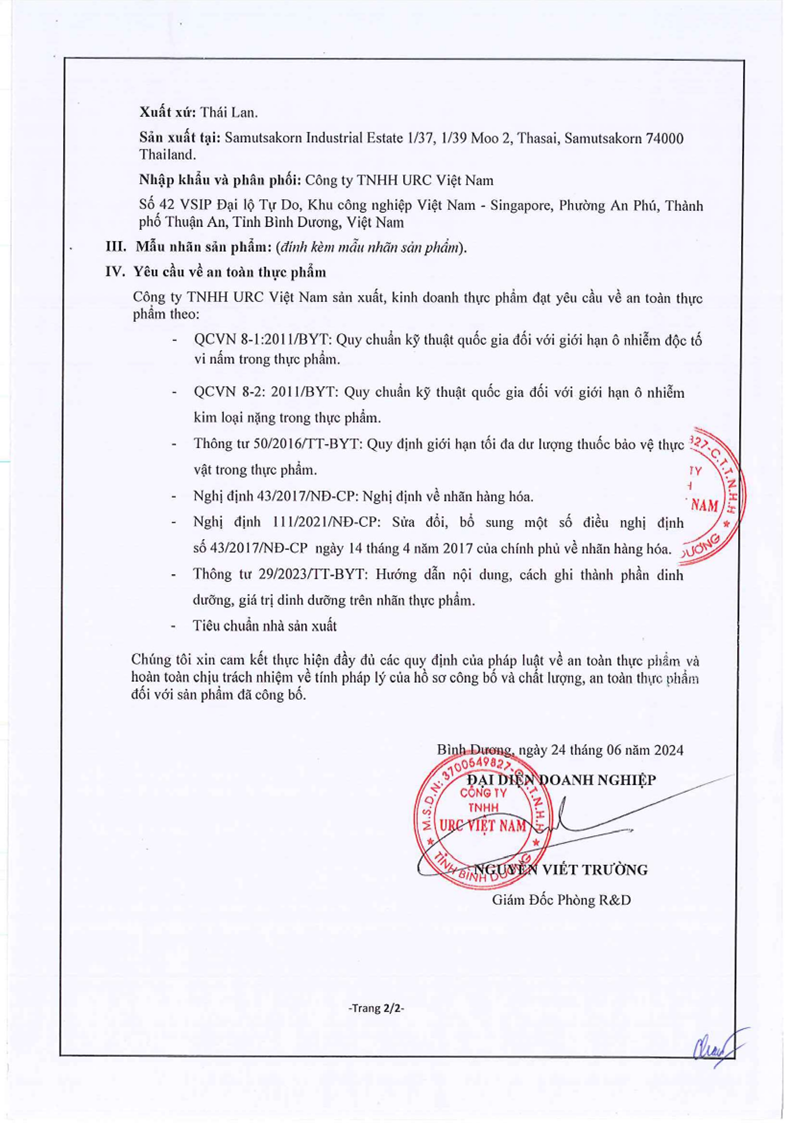BẢNG KẾT QUẢ THỬ NGHIỆM HÀ NỘI PLANT