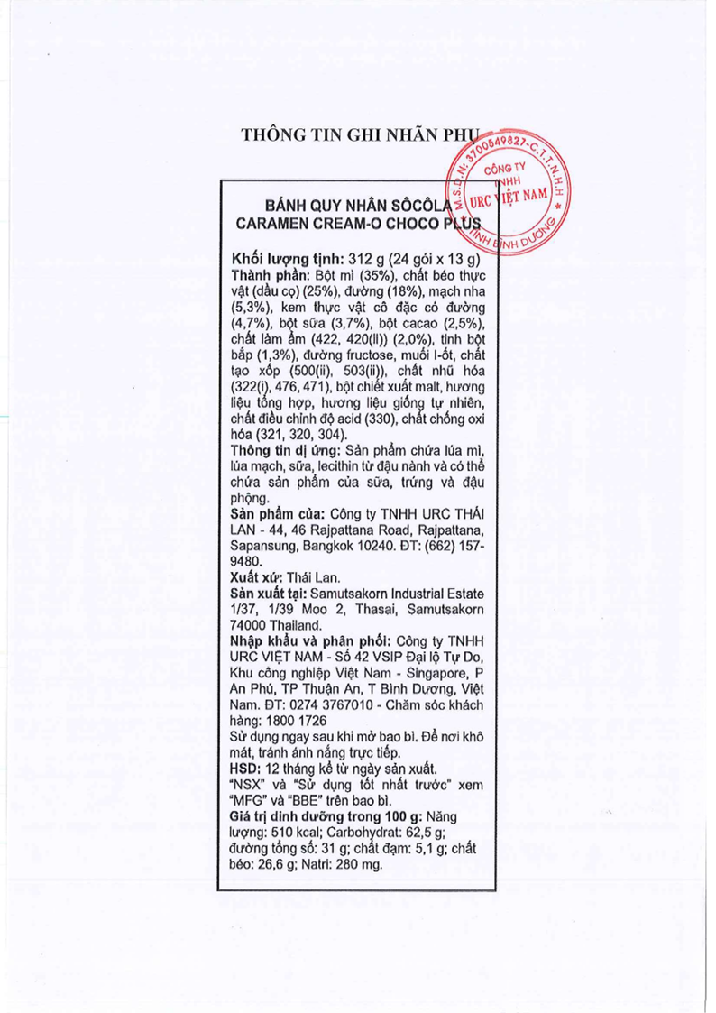 BÁNH QUY KEM SÔCÔLA CREAM-O