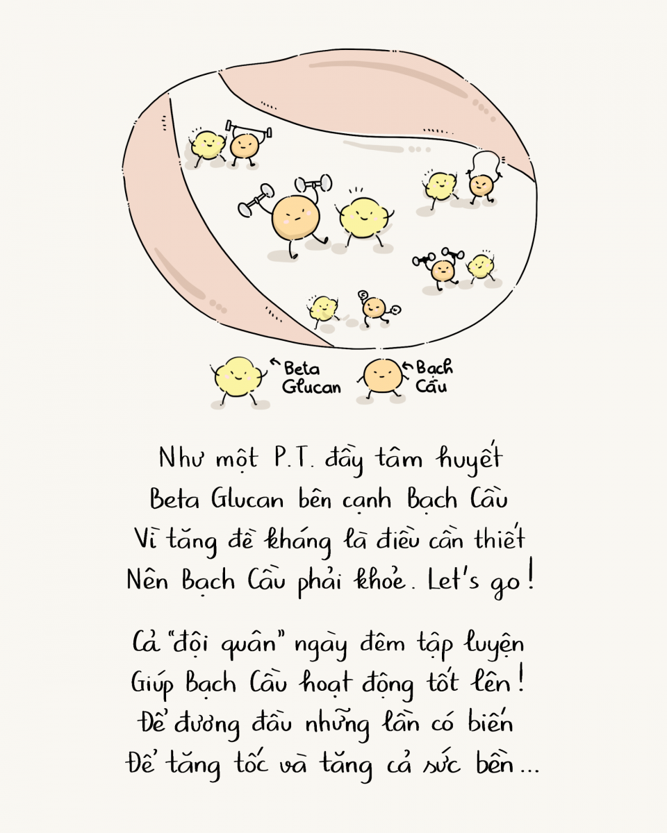 Khi vào cơ thể người, Wellmune® như một P.T (Personal Trainer - Huấn luận viên cá nhân) tâm huyết, gắn kết với các tế bào bạch cầu (tế bào miễn dịch nhiều nhất trong cơ thể người), giúp chúng nhận ra và sẵn sàng đương đầu chống các tác nhân gây hại bên ngoài vào cơ thể nhanh chóng hơn. Từ đó vượt qua mọi “cuộc chiến" để bảo vệ sức khoẻ, tăng tốc quá trình hồi phục hiệu quả.
