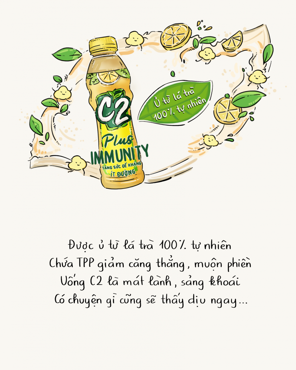 Được ủ từ nguyên liệu lá trà 100% tự nhiên và chế biến và đóng chai trong cùng một ngày để đảm bảo chất lượng và hương vị trà, mỗi ngụm C2 Plus Immunity giúp đánh tan cơn khát, đem lại cho người thưởng thức cảm giác thư giãn sảng khoái sau bộn bề bận rộn ngày dài.