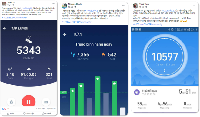Là nhãn hàng quen thuộc và được giới trẻ yêu thích, phong trào “Ở nhà không gắt - Bước chắc cùng C2” được hưởng ứng nhiệt liệt trên Fanpage trà xanh C2. Nhiều bạn trẻ đã đăng tải hình ảnh tổng số bước chân và kèm theo hashtag #1000buocC2 #C2PlusImmunity ở chế độ công khai.