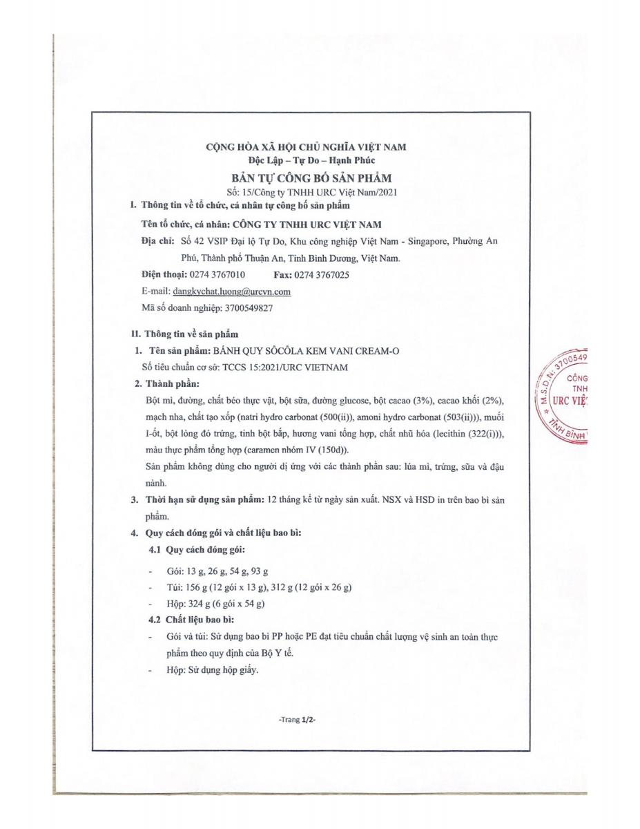 BÁNH QUY SÔCÔLA KEM VANI CREAM-O