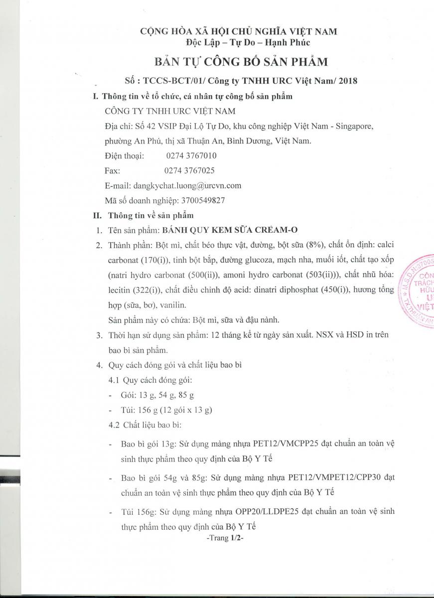Công bố sản phẩm mới - Bánh Quy Kem Sữa Cream O
