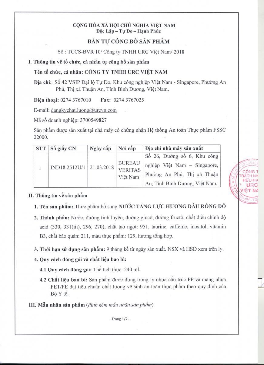 Công Bố Sản Phẩm Nước Tăng Lực Rồng Đỏ Cup - Hương Dâu