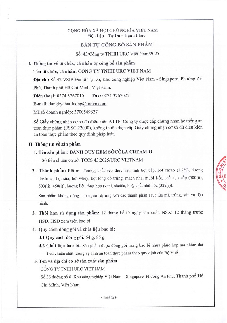 BÁNH QUY KEM HƯƠNG DÂU SỮA CHUA CREAM-O