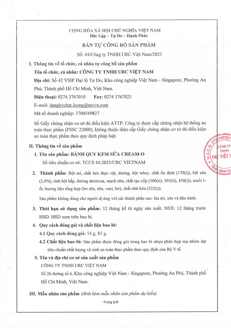 BÁNH QUY KEM HƯƠNG DÂU SỮA CHUA CREAM-O