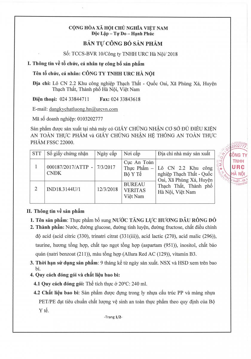Công Bố Sản Phẩm Mới Thực Phẩm Bổ Sung Nước Tăng Lực Rồng Đỏ Cup Hương Dâu - Nhà Máy Hà Nội