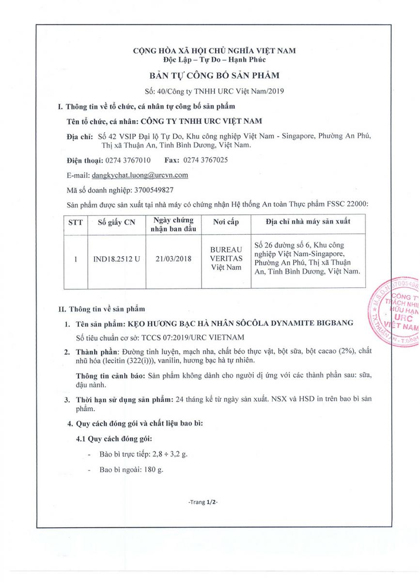 KẸO HƯƠNG BẠC HÀ NHÂN SÔCÔLA DYNAMITE BIGBANG – Bao bì mới